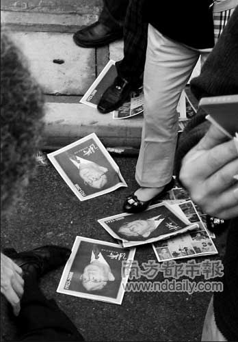 腳踩 謝晉畫冊遭哄搶之后,有一些被現(xiàn)場群眾踩踏,令人痛心。