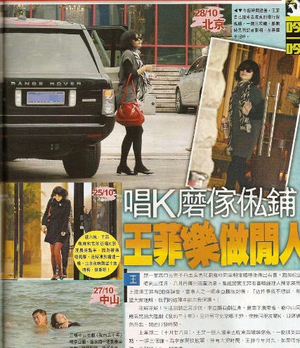 據(jù)報道,李亞鵬近期在廣東省與應(yīng)采兒拍電視劇《我的三十年》,留守北京的王菲,夜晚同朋友唱K,日頭偶然外出,閑逛打發(fā)時間。上星期二(十月廿八日),王菲一個人車去東四環(huán)看家俬,一點看到四點,一看就看三個鐘。