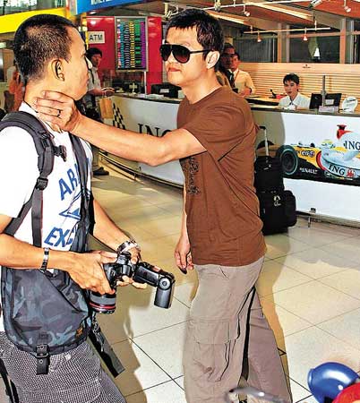 梁朝偉和劉嘉玲7月在不丹完婚后,出席婚禮的嘉賓已轉(zhuǎn)飛曼谷各自打道回府,王菲拖兩歲小女兒李嫣、大女竇靖童和丈夫李亞鵬到達曼谷機場時,李亞鵬為護妻女突然發(fā)火,手腳并用連打三記者,打人后他仍怒氣地說:“我見到一次會打他一次!