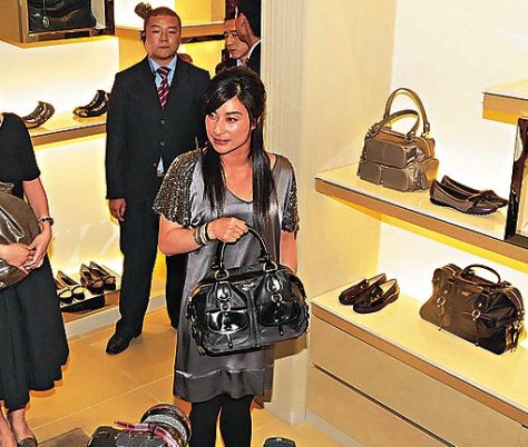 ·郭晶晶酒紅絲綢裙裝亮相 多名黑衣保鏢簇擁(圖)