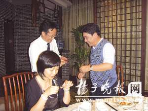 為了對(duì)在南京的聯(lián)合國(guó)副秘書(shū)長(zhǎng)進(jìn)行高端訪問(wèn),央視“高端主持人” 水均益前晚突然空降南京,天黑了才下飛機(jī),在幾位朋友的盛邀下,直奔南京頗負(fù)盛名的吃龍蝦酒店星湖飯店,現(xiàn)學(xué)現(xiàn)考,獲得“三段證”,有趣的是一同隨來(lái)的愛(ài)妻、央視五套專(zhuān)跑臺(tái)球大師杯的著名記者楊迪,吃蝦技藝超過(guò)老公,得了“六段證”。