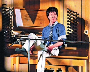 王力宏當(dāng)晚除去皮鞋彈奏管風(fēng)琴,雖然只是彈了幾下,但已博得全場掌聲。
