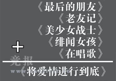 一堆縱橫交錯的演員,一段糾纏不清剪不斷理還亂的關系,全因一條紅絲帶而糾結,話劇版《將愛情進行到底》的海報實在非常有創(chuàng)意,可怎么好像很眼熟呢?原來世界各地的創(chuàng)意竟然如此相似,只不過日本電視劇《最后的朋友》用的是鮮明亮麗的紅線,美劇《老友記》選擇了手牽手的方式,熱播劇《緋聞女孩》和經(jīng)典漫畫《美少女戰(zhàn)士》索性完全摒棄了道具,臺灣組合鄒女的專輯封面《在唱歌》更在布局上動起了手腳,變得錯落有致。