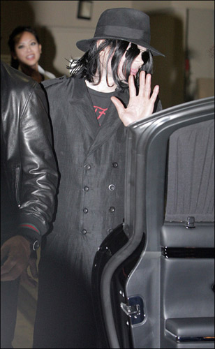 曾經(jīng)的天王,曾經(jīng)的巨星,曾經(jīng)的富豪樂壇最重量級天王邁克爾·杰克遜在宣布拍賣自己的收藏品后首次露面,在設(shè)計(jì)師Christian Audigier的陪同下外出購物。天王不管走到哪里都有無數(shù)的狗仔隊(duì)跟蹤,當(dāng)天的邁克爾·杰克遜身穿黑色禮帽,黑色風(fēng)衣,黑色褲子黑色鞋子,帶黑色蛤蟆鏡,一身黑色更顯得容顏憔悴,皮膚蒼白,我們真的很懷念的那個(gè)曾經(jīng)的天王。