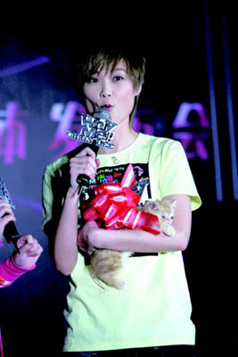 身穿2009年紐約時(shí)裝周最新款秋裝、驚喜地收下一只純品加菲貓的生日禮物、黃曉明為其獻(xiàn)花、阿信一上場就與其打趣地“大打出手” ……昨天下午,“李宇春2009WHY ME廣州演唱會”媒體發(fā)布會現(xiàn)場雙喜臨門的“壽星”李宇春可以說是天下最幸福的人了。