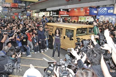據(jù)香港《明報》報道,阿嬌昨日以Bauhaus旗下的TOUGH Jeansmith亞太區(qū)代言人身分,現(xiàn)身旺角西洋菜街做宣傳。這次是阿嬌自艷照事件后首次面對群眾,大會聘請10多位保安維持秩序,警方亦加強軍裝警察協(xié)助,便衣探員亦在高處攝錄戒備,活動中除有半百fans帶齊橫額和敲銅鑼支持,亦吸引過千市民圍觀,場面熱鬧。