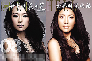洪晃博客里更新了這期雜志封面,她稱,“開選題會的時候就走偏了,不知不覺就朝山寨去了……所以趁著山寨還不犯法的時候,我們這期狠狠地過了一把癮,把同行的三巨頭(《VOGUE》,《ELLE》,《BAZZAR》)給山寨了一把。三個封面女郎都是由楊二車娜姆友情出場!