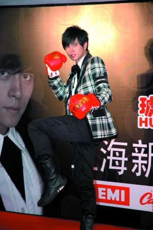 昨日,羅志祥來(lái)到上海為新專(zhuān)輯《無(wú)所不在》宣傳造勢(shì)。此次發(fā)片會(huì)非常隆重,新東家EMI不但包下豪華游輪做場(chǎng)地,還雇用十幾名保鏢對(duì)其貼身保護(hù)。除此之外,EMI斥資50萬(wàn)人民幣租下黃浦江上的巨幅LED屏一個(gè)月,全天滾動(dòng)播放其新專(zhuān)輯中的三首主打歌。羅志祥心情大好,一邊做出氣人的表情,一邊驕傲地說(shuō),“蔡依林看完我的《一枝獨(dú)秀》MV后,夸我造型‘帥呆了’,還問(wèn)我要造型師的電話,我就是不告訴她!”