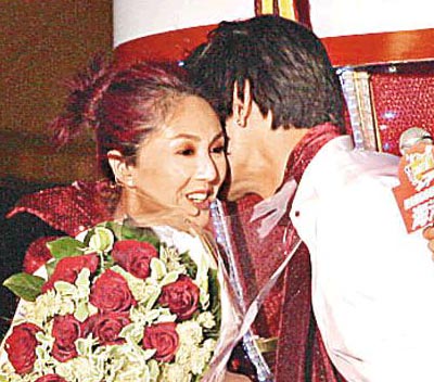 中新網(wǎng)12月26日電 據(jù)香港太陽報報道,楊千嬅、何韻詩與許志安等,前晚(12月24日)在尖沙咀廣東道舉行倒數(shù)派對,吸引逾萬市民圍觀!壓軸演出的千嬅,以一身紅彤彤的打扮搶鏡,大會安排一名高大俊男給她作“禮物”,令她興奮得哇哇大叫,還說:“Very Happy。ê荛_心!)”該名俊男送上鮮花及獻吻,但當(dāng)?shù)孟Ψ揭延屑沂,?#23301;即拒絕“愛意”。談及新年愿望,她暗示希望找到新戀情:“想找一件跟我般配的衣服!”