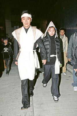 中新網(wǎng)1月30日電 鐘鎮(zhèn)濤(阿B)的父親鐘石泉早前病逝,前晚(28日)于香港殯儀館設(shè)靈,昨日出殯,遺體另擇吉日進(jìn)行火化儀式。前晚8時50分,阿B率領(lǐng)一眾親友到殯儀館后門化寶,他拖著大女兒嘉晴先行,女友范姜則跟在后面。雖然阿B早前聲稱仍未娶范姜,但前晚所見,范姜亦有披麻戴孝。