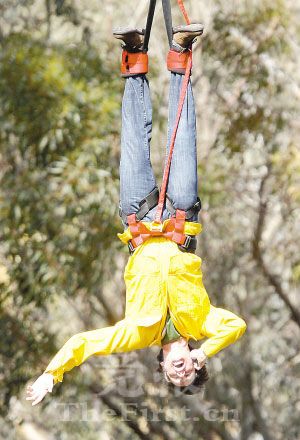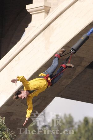 拍《Yes Man》蹦極場面 金·凱瑞倒掛500米(圖)