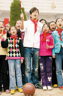 《少年包青天》中足智多謀書生氣十足的“公孫策”任泉,曾經(jīng)的“乖乖虎”蘇有朋,都搖身一變,成了鄉(xiāng)村小學(xué)老師。4月4日至7日,蘇有朋和任泉先后帶著很多體育器材,分別來到河南和湖南的鄉(xiāng)村小學(xué),當(dāng)了兩天老師。兩天的教師生涯里,任泉和蘇有朋各顯神通,打出不同“王牌”爭取學(xué)生青睞。