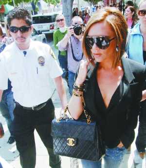 15日,辣妹維多利亞·貝克漢姆在洛杉磯外出逛街。一身敞胸設計的黑色套裝十分搶眼,一對“人工”美胸若隱若現。由于現場大批狗仔圍追,保鏢護駕忙得不亦樂乎,加上警察最后也來為其開道,派頭十足,挎著香奈兒手包的她款款而行,如維多利亞女皇出巡一般。