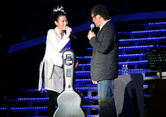 終于,這番朝思暮盼總算在成都演唱會上有了美麗結局。當奶茶在臺上一眼看到李宗盛優(yōu)雅的拖著吉他箱上臺助陣時,驚喜得說不出話。大哥逗趣笑說:“奶茶之前放過話,說我如果不給她吉他,接著每一場演出我都得來當她的嘉賓。所以呢,我今天可不可以先給妳吉他箱子,等下一場時再給妳吉他,因為我實在太想到妳的場子上唱歌了!”
