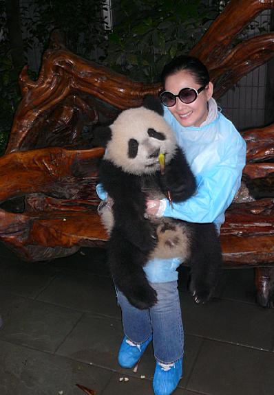 除了醫(yī)院探病獻愛心外,劉若英這次四川行程,也趁空去看了中國國寶大熊貓。當被告知園方開特例允許她真正擁抱一下小熊貓的時候,她受寵若驚,又怕自己承受不住熊貓的重量!皼]想到熊貓沒有想象得重,只是毛很松軟。”奶茶還偷偷摸熊貓大腿,發(fā)現(xiàn)真的摸不到骨頭。