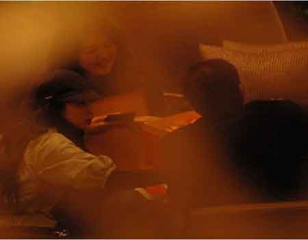 羅伯·明可夫朝靠窗處走去,此時(shí),回頭的李冰冰剛好讓記者看了個(gè)仔細(xì)。簡(jiǎn)單的寒暄過后,羅伯·明可夫靠窗位置坐下。為了更仔細(xì)的觀察到二人當(dāng)時(shí)的情況,記者轉(zhuǎn)身上到二層找尋最佳位置取證拍照,在鏡頭中,起初李冰冰與旁邊的助理不時(shí)拿出一些照片和資料給羅伯·明可夫看,李冰冰還不時(shí)用手指著一些照片在解釋什么,雖然羅伯·明可夫似乎沒有太多肢體上的語言,但從李冰冰手舞足蹈的表現(xiàn)中,可以看出二人交流的很愉快(看來李冰冰的英語練得不錯(cuò))。交談的過程中,羅伯·明可夫不時(shí)手托著下巴認(rèn)真聆聽,不時(shí)談笑風(fēng)生,在隨后的時(shí)間里,雙方似乎達(dá)成了某些事宜,李冰冰與助理很認(rèn)真的說著某事情,而羅伯·明可夫則坐在一旁開始玩弄手機(jī),偶爾加入到李冰冰與助理的談話中。