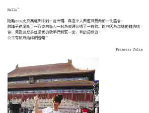剛剛于4月30日,北京奧運(yùn)會(huì)倒計(jì)時(shí)一百天的晚會(huì)上傾情放歌的蔡依林言行得體,并沒有什么過激之處,但是其隨后發(fā)表的一篇博客卻給她惹來了爭(zhēng)議。5月6日,蔡依林發(fā)表了新的博客日志,內(nèi)容是對(duì)參加這一活動(dòng)的回顧。不過,據(jù)搜狐網(wǎng)友發(fā)帖顯示,在這篇博客中,蔡依林把自己的表演地錯(cuò)當(dāng)成了天壇,而不是太廟,這引起了不少指責(zé)之聲。根據(jù)這一博客截圖頁(yè)面顯示,蔡依林稱“在美麗的天壇前一起演唱”,而她之后所貼的照片的背景正是其演出地“太廟”。一些網(wǎng)友稱其需要學(xué)習(xí)好歷史,有的則認(rèn)為她從小在臺(tái)灣地區(qū)長(zhǎng)大,出現(xiàn)這樣的狀況也可以原諒。不過,5月8日,記者再次打開蔡依林博客時(shí),卻發(fā)現(xiàn)那篇博客出現(xiàn)“天壇”的文字已被刪除。 峽 客
