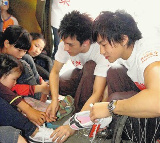 中新網(wǎng)5月22日電 何潤東、游鴻明、陳怡蓉及沈建宏等藝人,前天抵達成都后,即在紅十字會的安排下當(dāng)起義工,冒著余震的危險深入地震災(zāi)區(qū)彭州,為災(zāi)區(qū)民眾送上急需的物品。