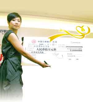 地震發(fā)生后演藝界的明星紛紛捐款獻(xiàn)血,林憶蓮昨天一出場更是一句沒有寒暄,就直接通過江蘇省紅十字會向四川災(zāi)區(qū)人民捐款10萬元。昨天記者到達(dá)現(xiàn)場時(shí),每個(gè)人的手臂上都被系上了一條黃絲帶,發(fā)布會最感人的一幕莫過于林憶蓮帶領(lǐng)全場所有人在平安樹上系上滿載美好祝愿的黃色絲帶,在舒緩的音樂聲中她閉上雙眼默默為災(zāi)區(qū)人民祈福。緊接著她還宣布:“觀眾每購買一張本場演唱會的門票,我們就會有5塊錢捐給災(zāi)區(qū)群眾,雖然5塊錢不多,但這是我們和歌迷的一份心意”。昨天晚上,主辦方還舉辦了慈善拍賣會,主辦方特別準(zhǔn)備了40張最前排的演唱會門票公開拍賣,演出冠名商更是以慈善的名義邀請到其諸多客戶參加拍賣會,而林憶蓮也拿出自己珍藏的2套演出服裝進(jìn)行拍賣,“我今天做的其實(shí)是非常小的事情,但是通過這個(gè)活動,我看到了所有參與人員大大的愛心,我想我會一直都記得今天南京人帶給我的感動”。最后門票與兩件演出服共拍得137000元,這些善款也將全部捐給災(zāi)區(qū)。