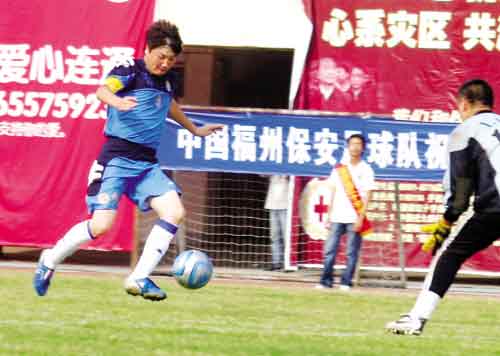 昨日下午,由孫楠、黃健翔、常寬、黃征等諸多文體明星組成的夢(mèng)舟明星足球隊(duì)在省體育中心與中國人壽福建代表隊(duì)進(jìn)行了一場(chǎng)主題為“攜手人道·抗震救災(zāi)”公益比賽,在現(xiàn)場(chǎng)隊(duì)長(zhǎng)孫楠代表明星足球隊(duì)為四川災(zāi)區(qū)捐贈(zèng)了價(jià)值100萬元的款物。昨日同時(shí)也進(jìn)行了省紅十字會(huì)十大愛心公益企業(yè)和個(gè)人表彰活動(dòng)。最終雙方以1:1的結(jié)果握手言和。在球賽間隙明星們也接受了記者采訪,說起了自己的賑災(zāi)感想。