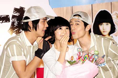 在新劇中飾演“宅女”的楊丞琳表示,她是首次飾演這樣內(nèi)斂的角色,也是一種挑戰(zhàn)。劇中,她將與飾演偶像明星的汪東城以及飾演青梅竹馬好友的胡宇崴有一段錯綜復(fù)雜的三角戀情。問到楊丞琳對兩個男生有什么印象,無厘頭的她竟回答:“我覺得他們一直在對我用力。”她透露,第一次見到大東時,她主動找他攀談,他卻一臉酷樣不理人。對此沒印象的大東連忙澄清:“可能是我在團里被要求?,不能講話吧!贝髺|說他媽媽很欣賞楊丞琳:“我跟她同樣都是一出道就要幫家里背債,她已還完債并買了新房子,現(xiàn)在我的房貸也快還清了,正在找新房子。”楊丞琳聽完馬上說:“我家那邊還有空屋,歡迎來當(dāng)我的鄰居!