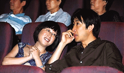 鄢頗與一女子親密觀影