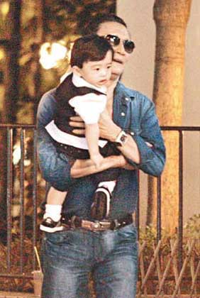 一向視孫兒為心肝寶貝的四哥,期間獨自抱孫下樓往附近逛公園,下月2日便足一歲的Lucas,樣子愈大愈像父母及爺爺,頭發(fā)長得非常濃密,全程在爺爺懷中更精乖沒有鬧別扭,當(dāng)四哥與他說話時,雖不懂回應(yīng)亦笑著望爺爺,逗得四哥很開心。四哥抱住Lucas四周逛,見人就狂贊乖孫很可愛。