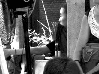 圖文:小宋佳難耐片場高溫 抽煙解心煩