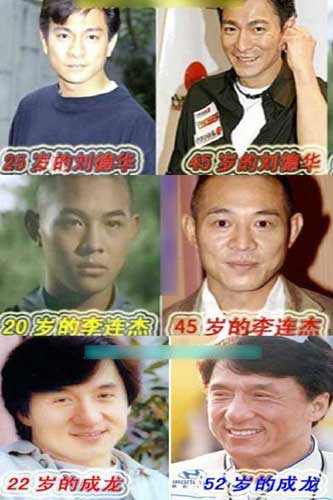 劉德華、李連杰、成龍今昔對比照片(由上至下)
