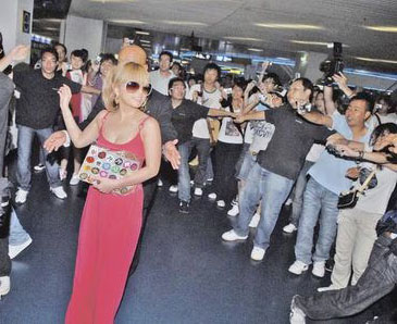 中新網(wǎng)7月25日電 日本巨星濱崎步本周二(22日)到澳門拍攝2008年月歷,匆匆逗留28小時(shí)之后,前日晚上7時(shí)許返港。換上橙紅色吊帶裙,戴上太陽(yáng)眼鏡的濱崎步,獲30余名粉色送機(jī),場(chǎng)面火爆。