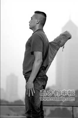 在電影里,他出演的“老三”是一位阿甘式的退伍軍人,因為大腦缺氧而出現智力障礙,在一次見義勇為受到表揚之后,他發(fā)現了擊倒壞人的快樂,于是他練就了強壯的肌肉,并苦練凌厲的技擊術。在兩分多鐘的預告片中,劉燁一直在打人,戲里他的偶像是岳飛,他的武器是“紅纓槍”,他閑時不是唱軍歌就是唱國歌,總是“夢想用拳頭改變世界”。