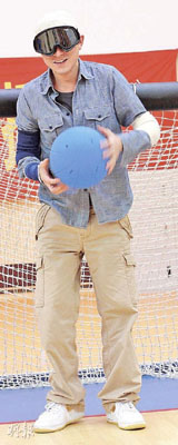 劉德華戴上不透視的眼鏡體驗(yàn)盲人女子門(mén)球。圖片均來(lái)自香港《明報(bào)》。