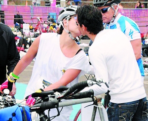 美國時(shí)間9月14日,剛生完孩子7個(gè)月的39歲歌壇天后珍妮弗·洛佩茲,完成了在馬里布舉行的三項(xiàng)全能運(yùn)動(dòng)(游泳、跑步、自行車),為慈善活動(dòng)籌款。據(jù)《人物》雜志透露,洛佩茲全程耗時(shí)2小時(shí)23分28秒,沿途有不少“粉絲”為她加油助威,在自行車和跑步賽段的轉(zhuǎn)換中,其丈夫安東尼還送上熱吻鼓勵(lì)。盡管比賽中不慎扭傷踝關(guān)節(jié),洛佩茲沖過終點(diǎn)時(shí),依舊露出勝利者的燦爛笑容。