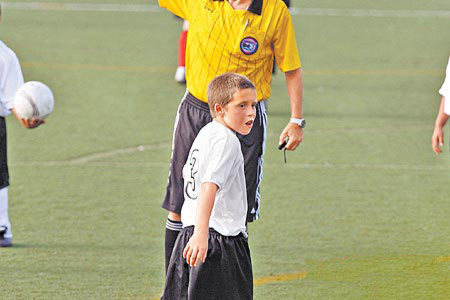 9歲的布魯克林踢球頗有貝克漢姆之風(fēng)。