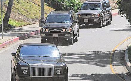 貝克漢姆開勞斯萊斯(前)接小孩,后頭還跟著2車護(hù)駕。