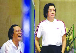 明星羽毛球隊(duì)的每個(gè)成員都有一個(gè)綽號(hào),劉曉慶叫“火鳳凰”,她的男友阿峰號(hào)稱“玉麒麟”,比賽中,現(xiàn)場觀眾都希望看到這對(duì)“恩愛情人”配對(duì)出擊,遺憾的是,可能是有所顧忌吧,大家的愿望直到比賽結(jié)束,也沒有實(shí)現(xiàn)。