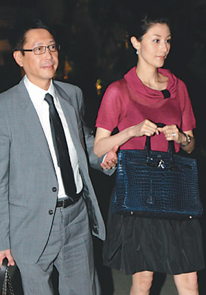 李嘉欣(右)提著愛瑪仕包,和許晉亨在香港現(xiàn)身,李嘉欣左手上6克拉鉆戒亮閃閃。