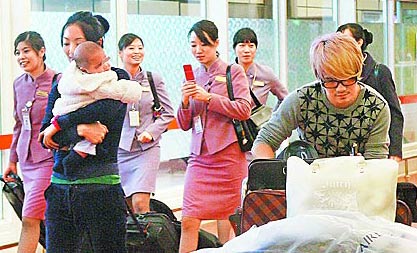 因他接下來到農(nóng)歷春節(jié)前,都要為新專輯留在臺灣籌備,一直希望全家人能團聚的他,索性將老婆、兒子都接來臺灣陪伴,近4個月大的Joe昨首度搭機,不太哭鬧,但因嬰兒推車、衣服、奶瓶等育兒用品多,曹格昨說:“光他的東西就3個行李箱,我一個人推,好重耶!”