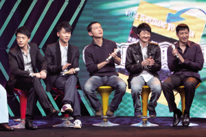 由康洪雷執(zhí)導、《士兵突擊》原班人馬打造的新劇《我的團長我的團》將于3月2日在江蘇衛(wèi)視進行全國首播。昨日,該劇在南京舉行首播式,康洪雷帶著段奕宏、邢佳棟、張國強、劉威葳等演員集體亮相。面對近百家媒體的追訪,康洪雷首次坦露了該劇拍攝時遭遇事故時的慘狀,還給大家揭秘道:“會看哭所有觀眾的,《我的團》全是英雄,最后跟日本人拼得只剩下兩個人了!闭f到動情處,現(xiàn)場男演員流下了眼淚。串場的魔術(shù)紅人劉謙,則表演了三個小魔術(shù),輕松賺走20萬。