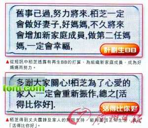 日前香港媒體曾透過張柏芝胞弟張豪龍慰問張柏芝,張豪龍以短信回復(fù)記者,而從字里行間可見,張柏芝顯得相當(dāng)堅(jiān)強(qiáng)。