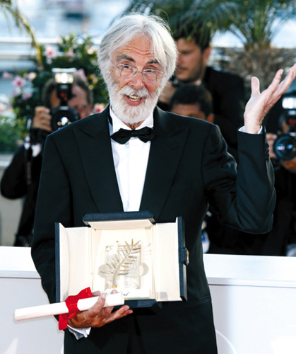 這個(gè)爭(zhēng)議也是扔給于佩爾的。當(dāng)“金棕櫚”得主哈內(nèi)克上臺(tái)領(lǐng)獎(jiǎng),于佩爾跟他作了長達(dá)10秒鐘的深情擁抱時(shí),人們無法不想起在2001年,正是哈內(nèi)克執(zhí)導(dǎo)的《鋼琴教師》讓于佩爾二度奪得戛納影后的桂冠。《白絲帶》能戰(zhàn)勝口碑更好的《預(yù)言者》,于佩爾在當(dāng)中有沒有起“作用”?于佩爾的表情很坦然:“哈內(nèi)克得獎(jiǎng),是因?yàn)樗麑?duì)人類靈魂的挖掘是如此深刻!”