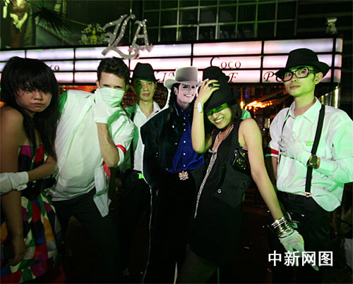 中新網(wǎng)7月7日電 流行樂(lè)壇天王邁克爾•杰克遜將于北京時(shí)間8日凌晨將在洛杉磯舉行公眾悼念活動(dòng),全球主要電視臺(tái)紛紛現(xiàn)場(chǎng)直播昨晚,中國(guó)的“杰克遜迷”齊聚北京著名的夜店,為杰克遜舉行音樂(lè)專(zhuān)場(chǎng)紀(jì)念活動(dòng),現(xiàn)場(chǎng)歌曲全部是杰克遜的成名作,不少外國(guó)人也加入到懷念杰克遜的隊(duì)伍中。