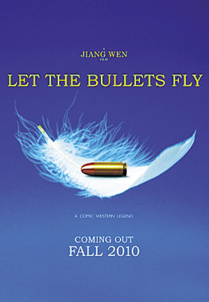 昨日,中國(guó)導(dǎo)演姜文的新片海報(bào)在戛納亮相。這幅簡(jiǎn)潔而極具沖擊力的海報(bào)以子彈和羽毛為主構(gòu)圖,英文片名《Let the bullets fly》(《讓子彈飛吧》)隨之曝光。海報(bào)上主打的概念“喜劇、西部、傳奇”,透露出這部新片可能會(huì)是一部與姜文以前作品不同的商業(yè)大片。