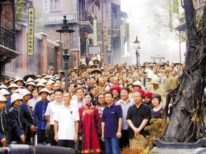 關(guān)機儀式上,監(jiān)制陳可辛、黃建新以及導演陳德森都向神秘嘉賓———香港導演劉偉強道謝。陳可辛說,《十月圍城》作為籌備10年的作品,是他拍過的“最難最累的作品”,并且也遭遇了“大片危機”。在拍攝最艱難的時期,兩位監(jiān)制向劉偉強求助,當時正在籌備新戲的劉偉強二話不說就提著行李趕到上海,承擔起部分拍攝工作。在昨天的關(guān)機儀式上,陳可辛現(xiàn)場提出了一個新商業(yè)電影概念:“我希望《十月圍城》作為‘人人電影’的開山之作,可以印證我構(gòu)想中的‘新主流商業(yè)片’,即擁有流暢的故事、曲折的情節(jié)、感性的表演、高尚的情懷和單純的觸動,希望這也是觀眾的普遍反應!