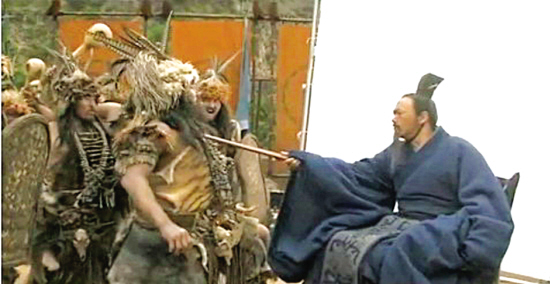 在《孔子》制作特輯第一集中,有一個這樣的鏡頭:孔子手持木杖,一招之間擊落蠻夷手中的短劍,并將木杖抵在蠻夷首領(lǐng)的咽喉。飄逸的身手,仿若《臥虎藏龍》中李慕白重現(xiàn)。而“夾谷會盟”片段,孔子提劍救魯公的模樣更是英姿颯爽。