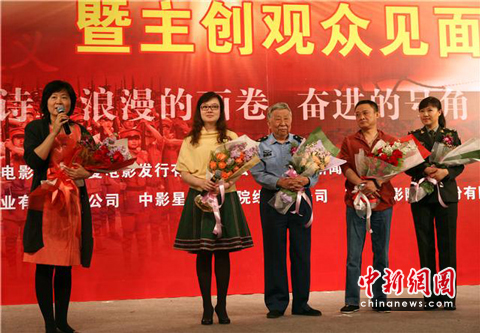 中新網(wǎng)5月14日電 繼大型音樂舞蹈史詩《復(fù)興之路》在人民大會堂和國家大劇院上演百場后,《復(fù)興之路》的電影版將于5月15日在全國上映。今天,電影版《復(fù)興之路》在北京青年宮電影城舉行了北京首映典禮!稄(fù)興之路》舞臺版文學(xué)部主任閻肅、電影版導(dǎo)演王一巖、歌唱演員王麗達(dá)、王慶爽等主創(chuàng)與現(xiàn)場觀眾進(jìn)行了親切交流;顒又,閻肅妙語連珠,開玩笑爆料自己險些就成為了《復(fù)興之路》的朗誦;主唱王麗達(dá)也以特別的形式演唱了歌曲《學(xué)習(xí)雷鋒好榜樣》。