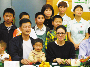 現(xiàn)場(chǎng)的李亞鵬時(shí)時(shí)處處都表現(xiàn)得像個(gè)慈祥的父親,不斷地詢(xún)問(wèn)著康復(fù)兒童的情況,由于考慮到患者家庭很困難,他還表示,“無(wú)論如何,我們基金是不會(huì)收家屬制作的錦旗的,希望你們也不要去亂花錢(qián)!辈灰\旗,從災(zāi)區(qū)來(lái)的10歲小女孩王麗卻從衣兜里掏出兩個(gè)手工做的蘋(píng)果,活蹦亂跳地送到李亞鵬夫妻面前,感動(dòng)得二人連忙起身接收?吹蕉魅耸障露Y物,王麗很高興,現(xiàn)場(chǎng)唱起了《一千零一個(gè)愿望》,眼淚都唱出來(lái)了。據(jù)悉,王麗曾在地震中受到了嚴(yán)重的腦外傷,雖然經(jīng)過(guò)醫(yī)治,但現(xiàn)在還有一只耳朵失聰。