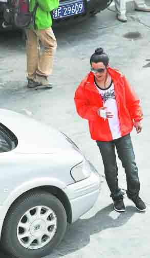 因?yàn)楦拭C的風(fēng)沙較大,天氣預(yù)報(bào)昨天傍晚還會(huì)有沙塵,所以老謀子可以說(shuō)是全副武裝,胸前挎著墨鏡,脖子上還戴著紅黃相間的牛仔圍巾,穿著他最喜歡的大紅色外套,外套上竟然寫(xiě)著“第29屆奧林匹克運(yùn)動(dòng)會(huì)開(kāi)閉幕式導(dǎo)演組”的字樣,不知老謀子是否希望執(zhí)導(dǎo)北京奧運(yùn)會(huì)的紅火運(yùn)氣能帶到《三槍拍案驚奇》劇組中來(lái)。已經(jīng)兩年沒(méi)有拍戲的張藝謀,看見(jiàn)記者顯然有點(diǎn)吃驚,但對(duì)于記者的追問(wèn),他也只是笑而不答。