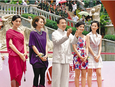 典禮雖然在早上舉行,但當(dāng)天陽(yáng)光普照、氣溫差不多高達(dá)35度,現(xiàn)場(chǎng)某些工作人員也差點(diǎn)暈倒并需人扶持,就像是在蒸桑拿。眾明星及嘉賓到場(chǎng)后坐了五分鐘后,已經(jīng)大汗淋漓,明星都需換衫及補(bǔ)妝。幸得成龍大哥憐香惜玉,細(xì)心照顧,在臺(tái)上拿出印有龍字的私人毛巾逐一在容祖兒、蔡卓妍等人面上“印”汗,還假裝要拋到觀眾席上,原來是為自己收藏,引得全場(chǎng)大笑,他們又在臺(tái)上相談甚歡,互相打趣,現(xiàn)場(chǎng)充滿歡聲笑語(yǔ),觀眾開心得合不攏嘴,爭(zhēng)相拍照,令氣氛達(dá)到高潮。