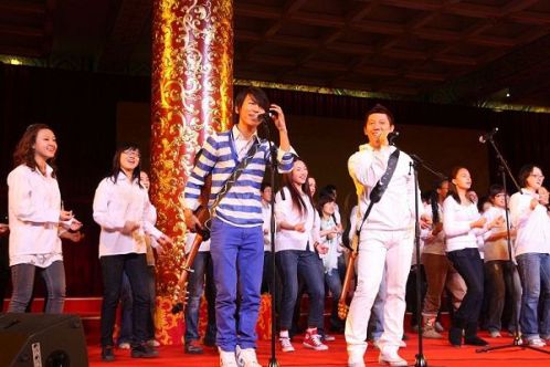為歡迎美國總統(tǒng)奧巴馬訪華,前晚一場特別的慶祝活動在人民大會堂舉行,中國文藝界明星紛紛登臺獻(xiàn)藝,羽泉作為流行樂壇的唯一代表壓軸獻(xiàn)唱歌曲。